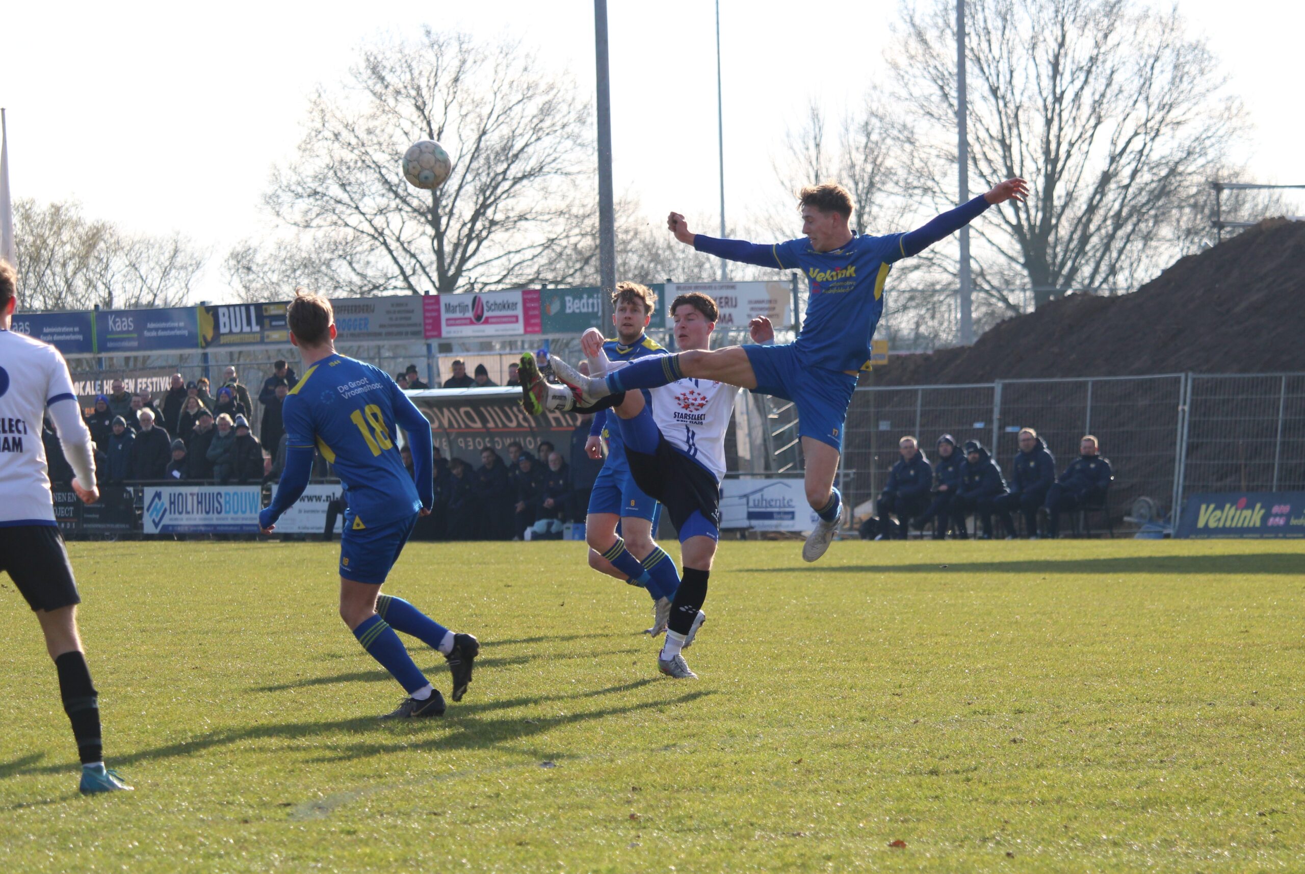 Door dit resultaat is vv Den Ham buurman Vroomshoopse Boys tot op een punt genaderd in de enerverende eerste klasse G. Door slordigheden schoot Vroomshoopse Boys zich onnodig in eigen voet in deze derby, die pas in de levendige tweede helft echt los brandde. Op donderdagavond 19 februari oefent de Boys uit om 20.15 uur in Borne tegen derde divisionist NEO. Op zaterdag 28 februari wordt de competitie voor de Boys hervat met een uitwedstrijd tegen MVV’29, die om 18.00 uur in Harbrinkhoek begint.