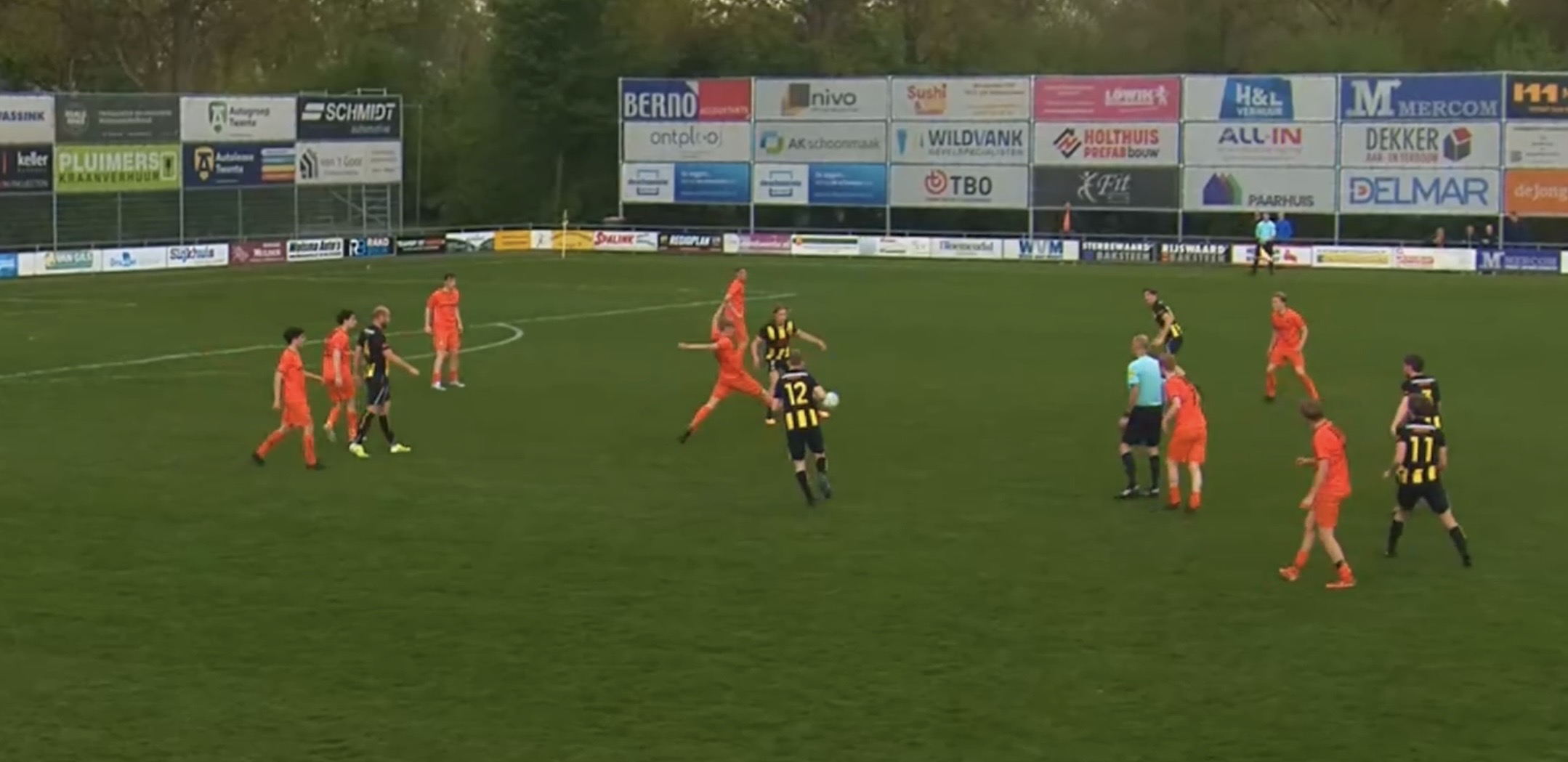 De Peuverweide in Geesteren ademt onmiskenbaar rijke voetbalhistorie. En dat niet alleen: voetbal wordt er ook vandaag de dag intens beleefd onder het motto ‘Poot d’r in, kop d’r veur’ met veel volk langs de lijn. Direct voor het streekduel tegen Vroomshoopse Boys was er op zaterdagavond al rood-geel vuurwerk door jeugdige supporters. Scheidsrechter Semih Kiremit moest eerst samen met beide teams wachten totdat de rook was opgetrokken.