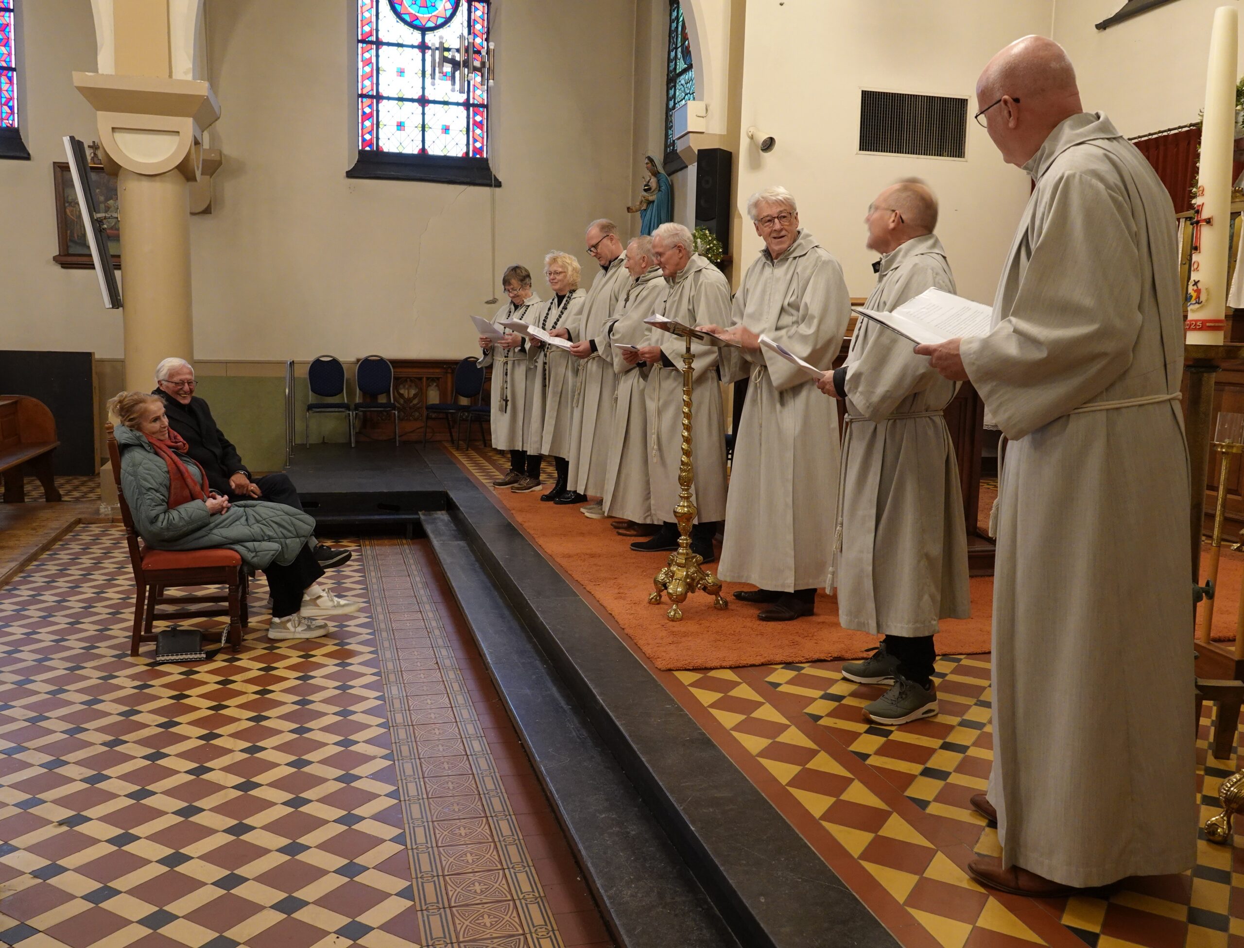 Uitgerekend op Hervormingsdag werd het een sfeervolle oecumenische samenkomst in de serene rust van de St. Willibrordkerk. Het ‘rijke roomsche leven’ kwam zeker ook voorbij en daarnaast werden diverse lokale historische gebeurtenissen op een ludieke wijze verwoord door de monniken en nonnen van Levend Vroomshoop. De ‘parel’ Geerdijk kwam in dichtvorm aan bod, de kern waar het echtpaar de Vries zo lang heeft gewoond.