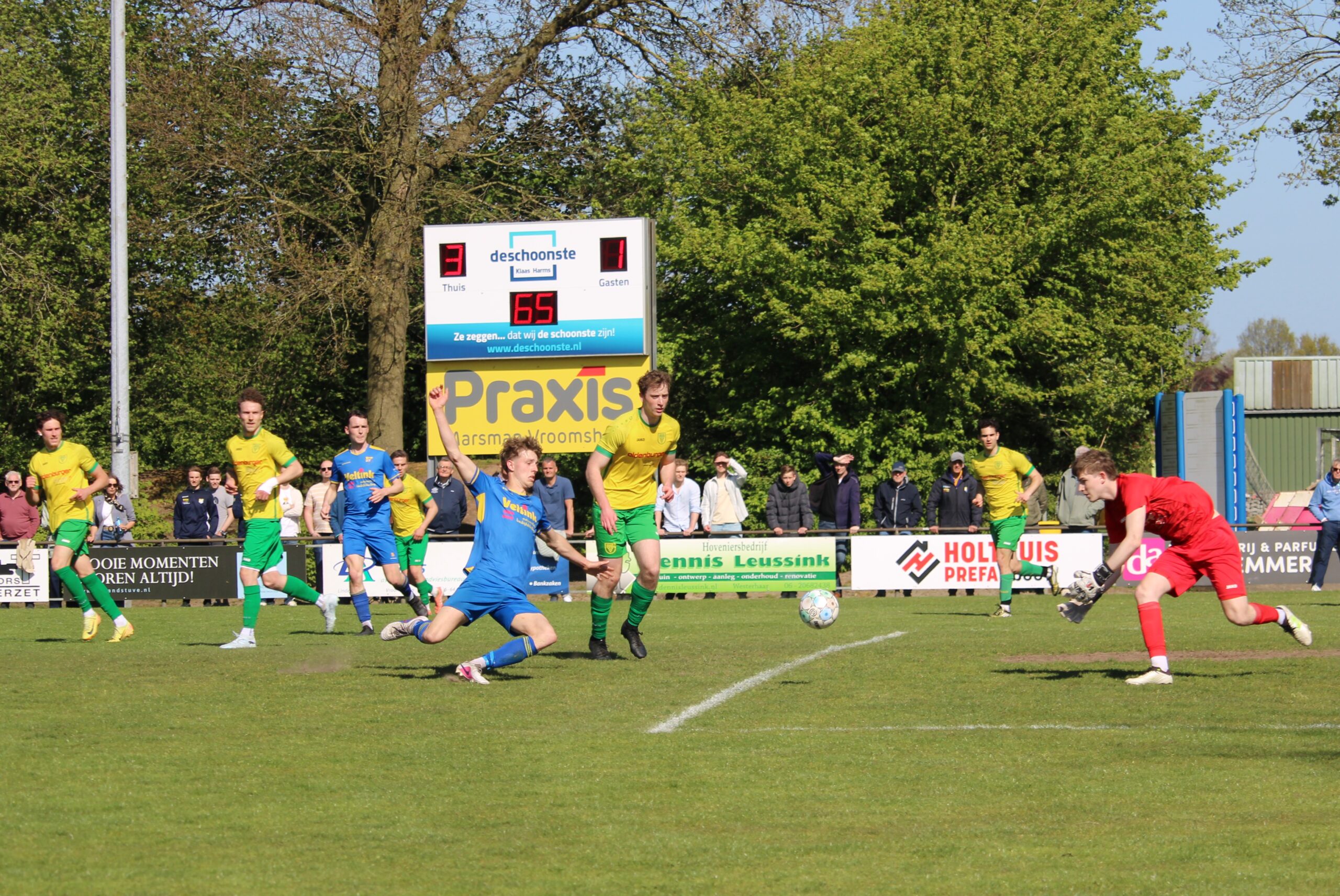 In blessuretijd zorgde Siem Pierik met een fraaie kopbal voor het slotakkoord: 5-2. Dit werd tevens de eindstand.